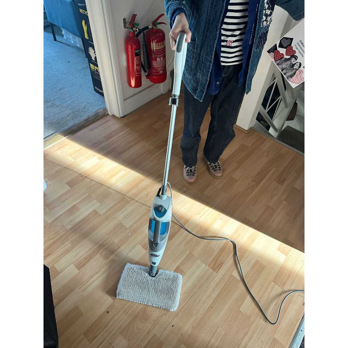 This steam cleaner is perfect for hard flooring. Fill with water, plug in and get cleaning. Comes with a few interchangeable pads that need washing in the washing machine before returning.