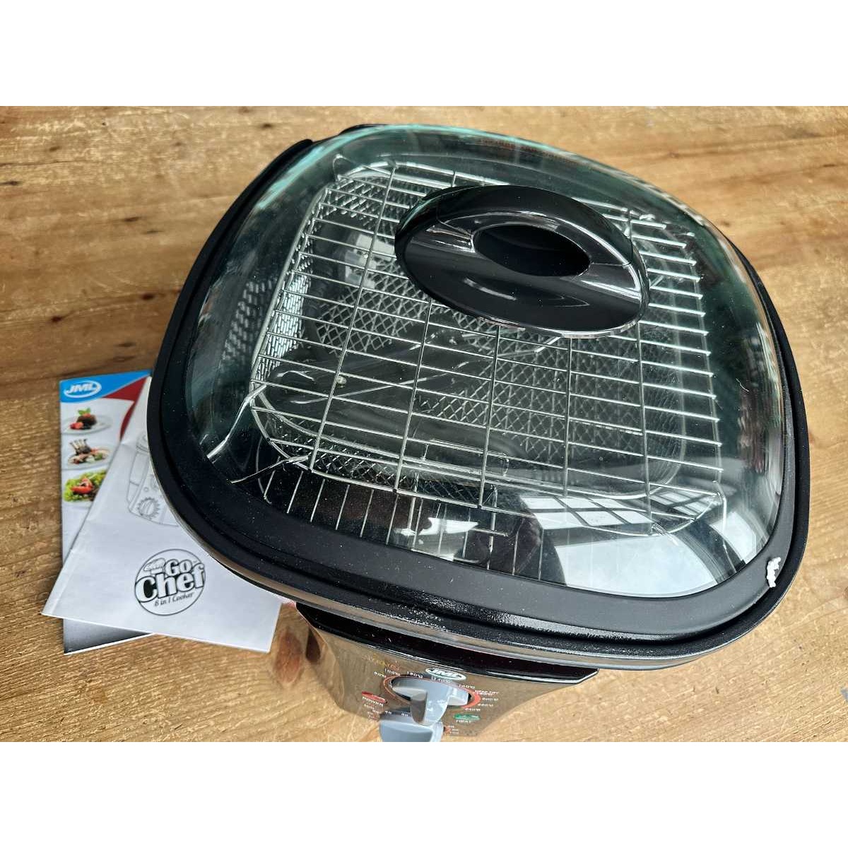 Roast, bake, fondue, slow-cook, poach, steam, fry, and boil in one. This table top cooker would be a perfect go between if you are having a kitchen refurbishment or your cooker is broken. It comes with full instructions and a recipe book. Deep fat fryer function not available but you can still shallow fry or saute. Easy to clean as the part you cook in comes away from the base but can be a bit stiff to get out.